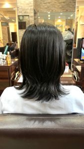 首元からレイヤーが入るようにお切りして、後頭部は丸みが出やすいスタイルでカット。