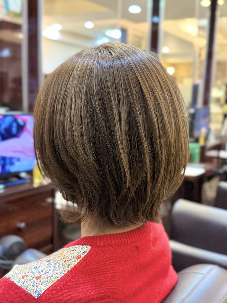 白髪も完全に染めきるわけではなく、薄いベージュにして、地毛の明るい茶色と馴染むような効果があります!