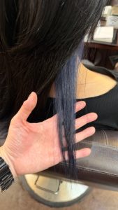 表面は地毛のまま残してカラーせず、黒髪のままにしています!