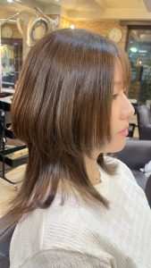 ※癖がある方で、ウルフカットご希望の方は全体の縮毛矯正、または部分的な縮毛矯正をおかけすると扱いが楽になるのでオススメしております♪
