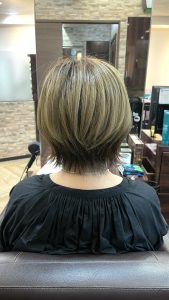 私のヘアスタイルもここずっとサイド耳下ギリギリの短かめで、襟足は鎖骨の少し下位のウルフカットにしているのですが、ご来店していただきカウンセリングでされたいヘアスタイルを伺うと、私のヘアスタイルを見て同じ感じにしたい!とおっしゃっていただける事が多くとても嬉しい限りです(^ ^)